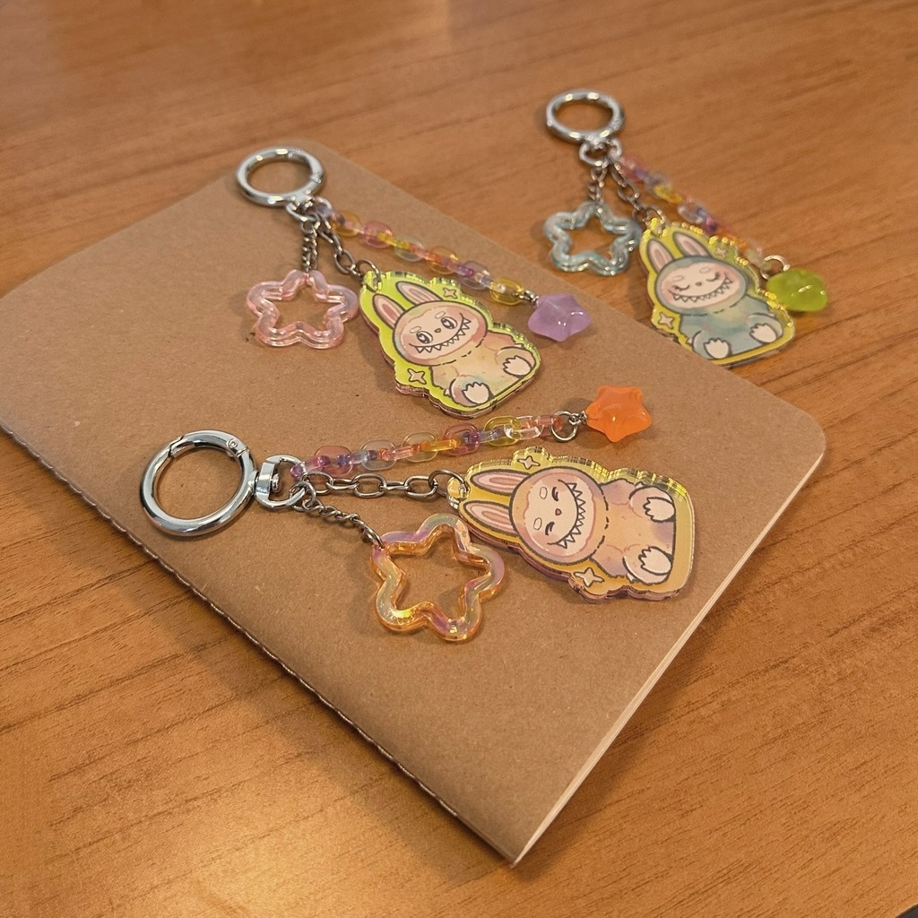 Todo cacarequer que se preze tem um chaveiro cheio de penduricalho - e esse aqui não é diferente, viu? Mas ao contrário dos originais, os lafufus desse chaveiro são de acrílico holográfico e mais leves na bolsa (apesar de que não mais discretos hehehe) (´ ε ` )♡